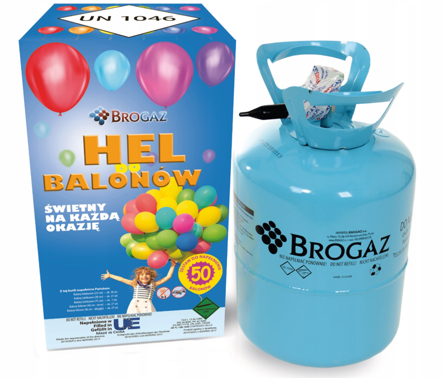 0,40 m3 helu wystarcza na napompowanie około 50 balonów lateksowych o rozmiarze 23cm (9 cali)