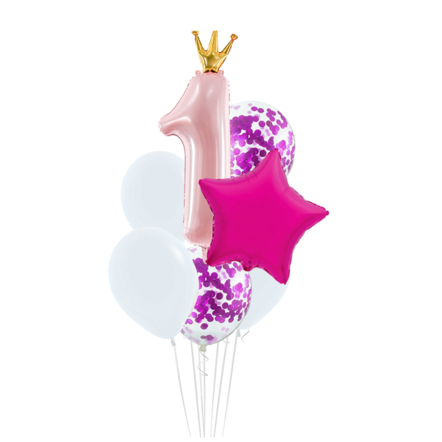 Zestaw balonów Bukiet balonowy Roczek dziewczynki różowy (7 szt.)