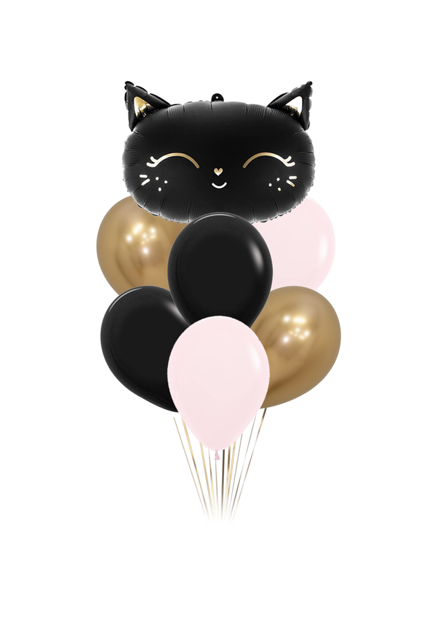Zestaw balonów bukiet balonowy z kotkiem czarnym DLA NIEJ 7 szt.