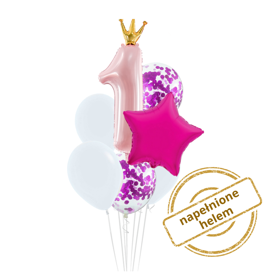 Zestaw balonów Bukiet balonowy Roczek dziewczynki różowy (7 szt.) Z HELEM