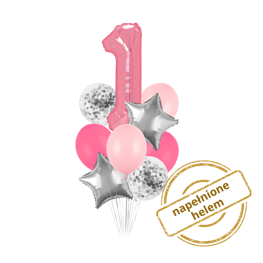 Zestaw balonów Bukiet balonowy Roczek dziewczynka różowo srebrny (9 szt.) Z HELEM