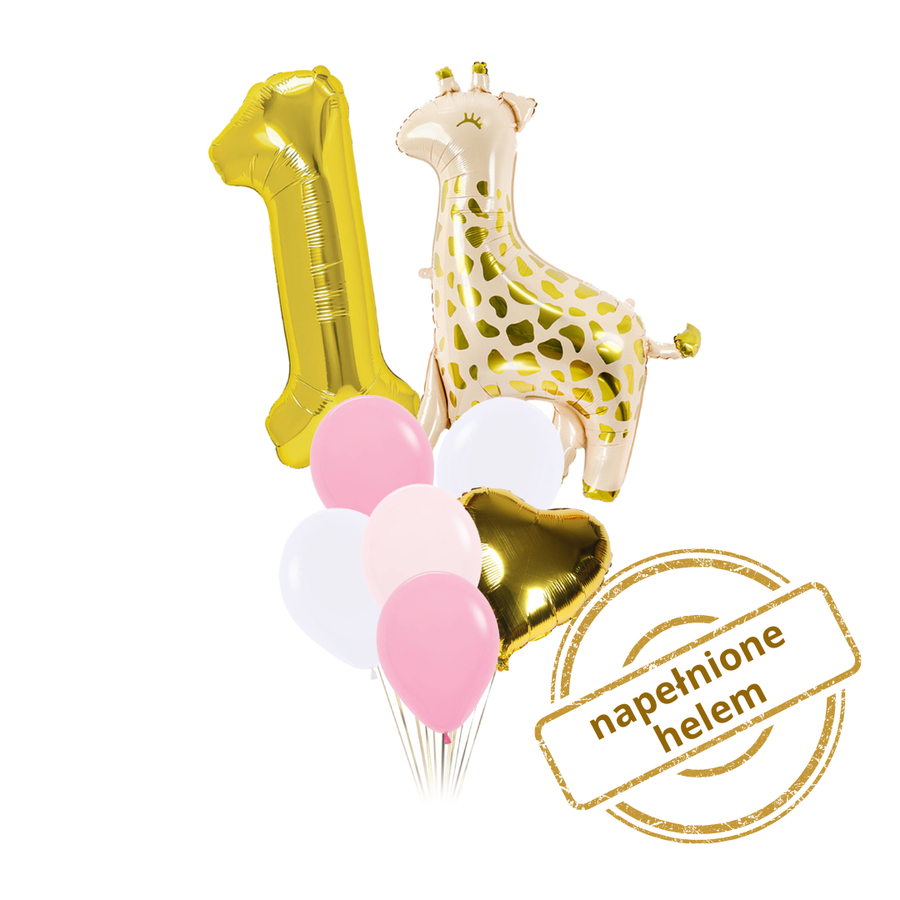 Zestaw balonów Bukiet balonowy Roczek z żyrafą (8 szt.) Z HELEM