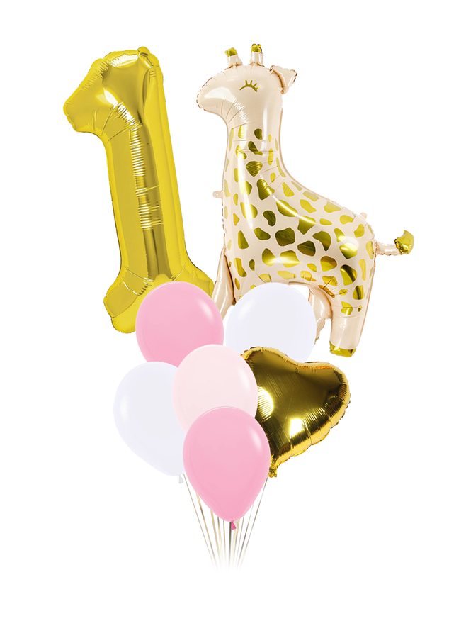 Pierwsze urodziny to wyjątkowe święto – uczcij je w wielkim stylu z uroczym bukietem balonowym z uroczą żyrafą. Bukiet został stworzony specjalnie na roczek dziewczynki. Ten zestaw to doskonała dekoracja na przyjęcie urodzinowe, sesję zdjęciową lub jako prezent-niespodzianka dla małej solenizantki.