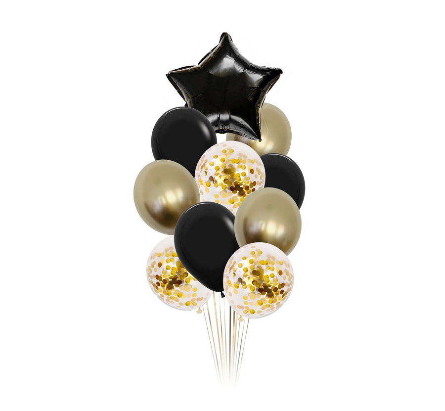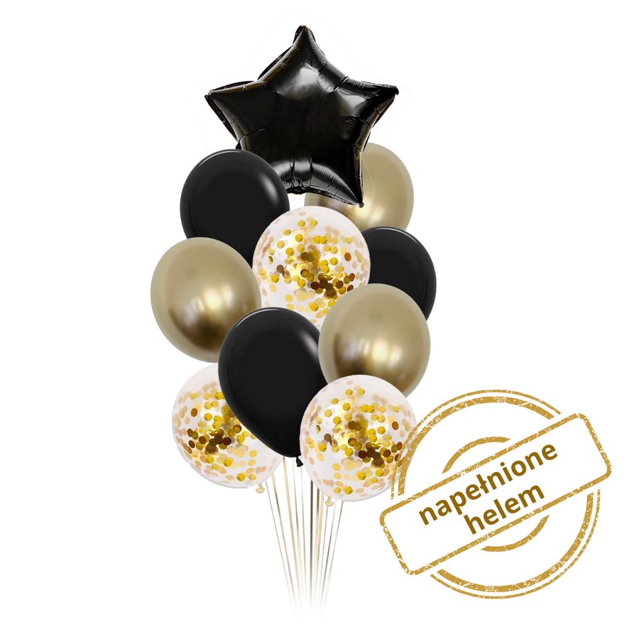 Zestaw balonów z czarną gwiazdką bukiet balonowy (10 szt.) Z HELEM