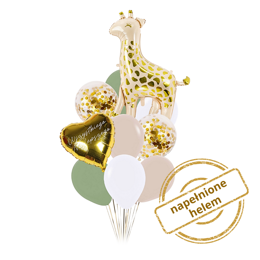 Zestaw balonów Bukiet balonowy z żyrafą i personalizacją (9 szt.) Z HELEM