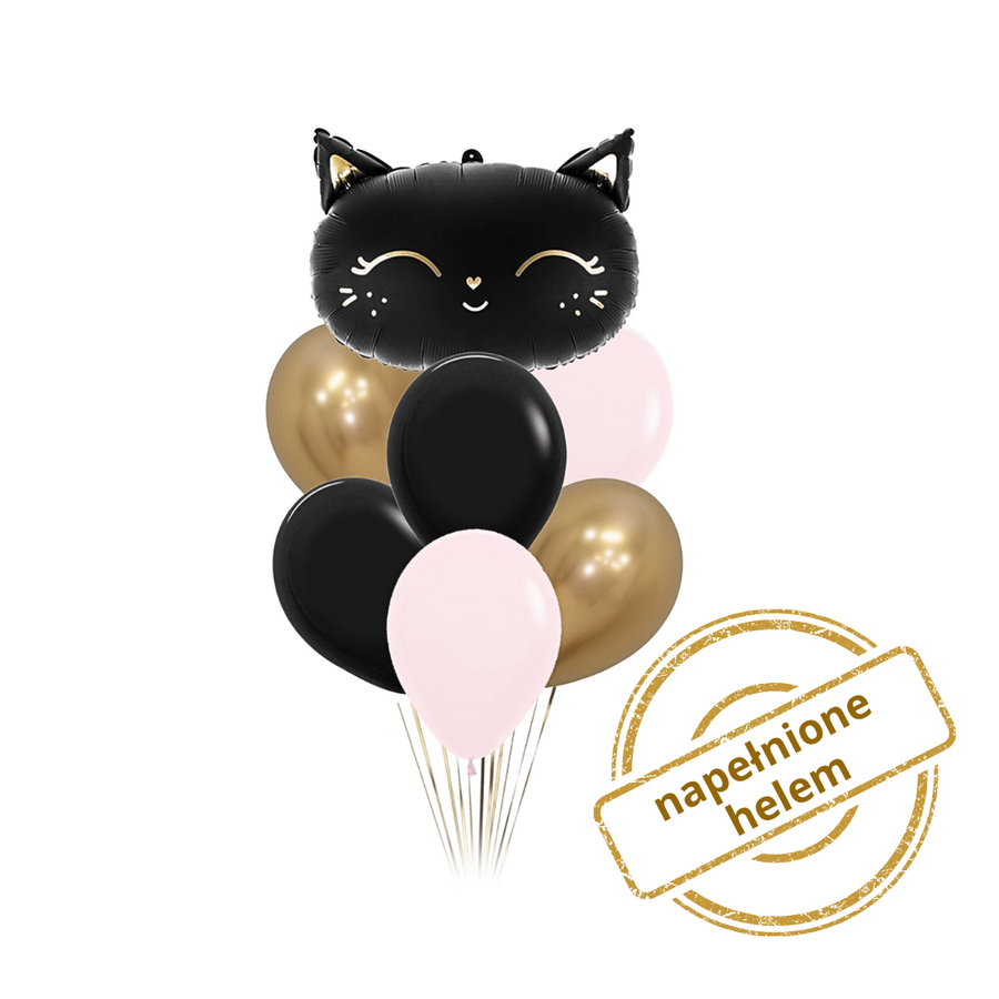Zestaw balonów bukiet balonowy z kotkiem czarnym DLA NIEJ 7 szt. Z HELEM