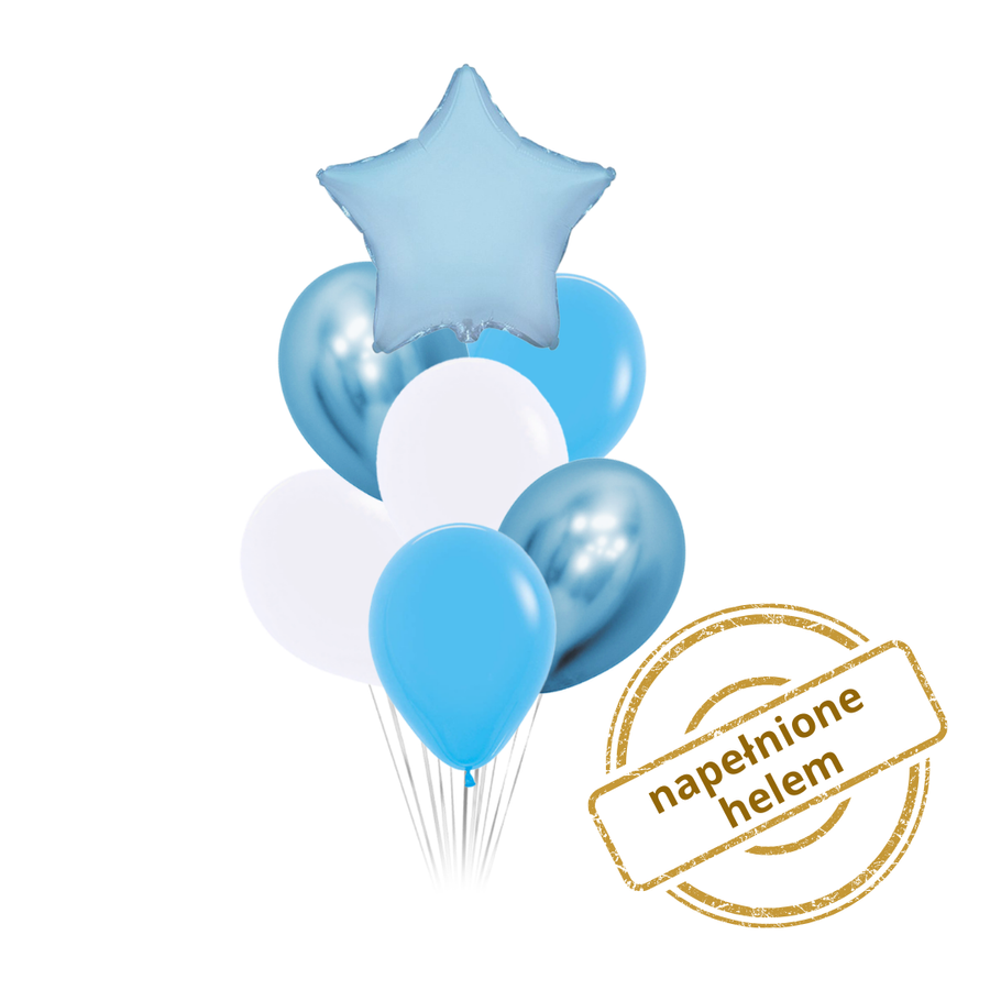 Zestaw balonów bukiet balonowy niebieski z gwiazdką 7 szt. Z HELEM