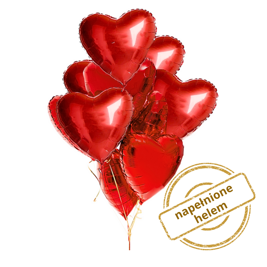 - Zestaw 9 balonów tworzących wspaniały bukiet, składający się z czerwonych serc. Spraw radość ukochanej osobie i podaruj bukiet na Walentynki