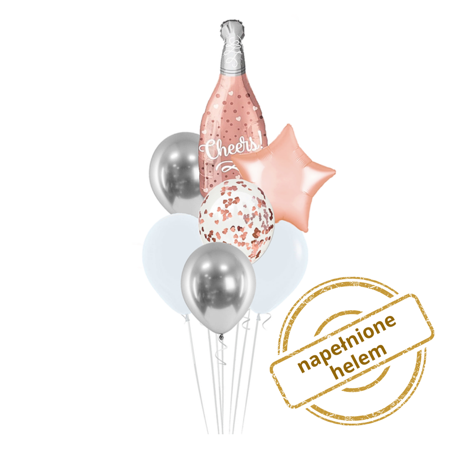 Zestaw balonów bukiet balonowy z Szampanem dla NIEJ 7 szt. Z HELEM