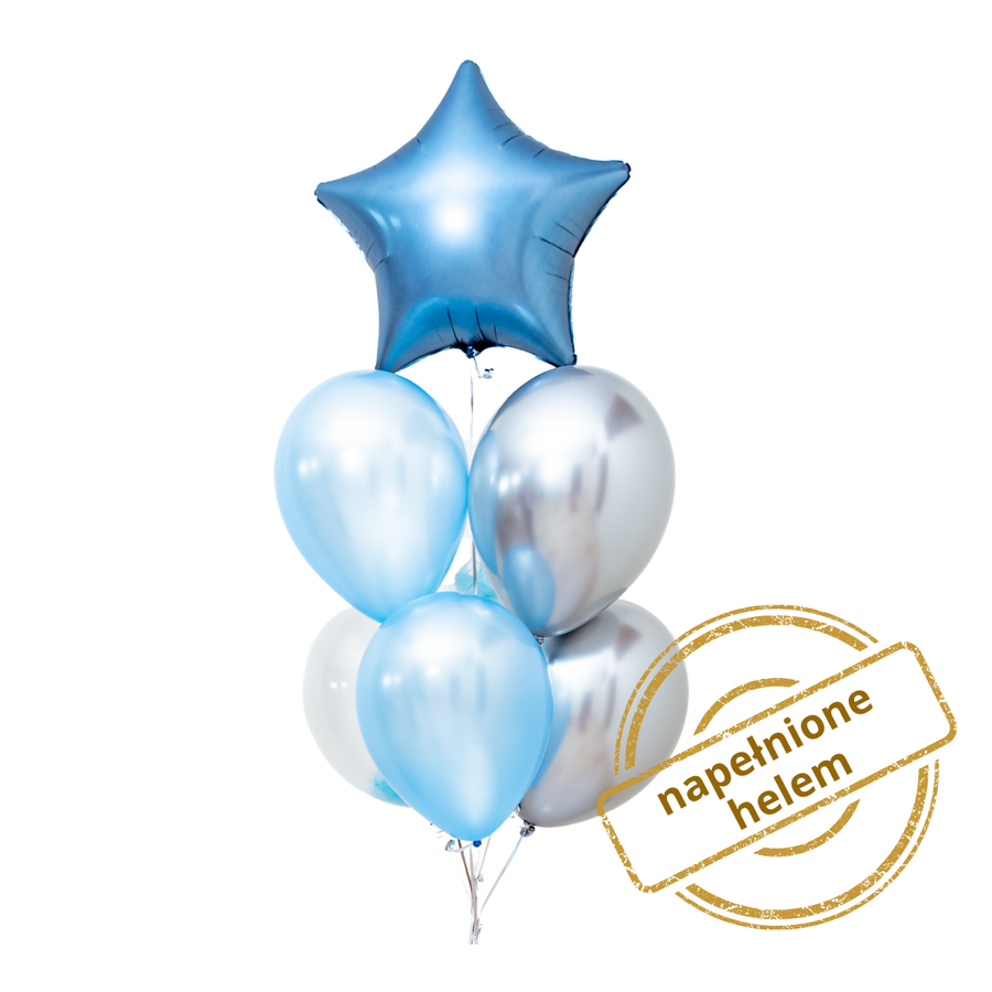 Zestaw balonów Bukiet balonowy z gwiazdką niebiesko srebrny 7 szt. Z HELEM
