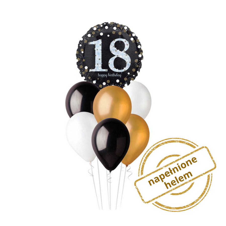 Zestaw balonów Bukiet balonowy 18 urodziny na Osiemnastkę 7 szt. Z HELEM