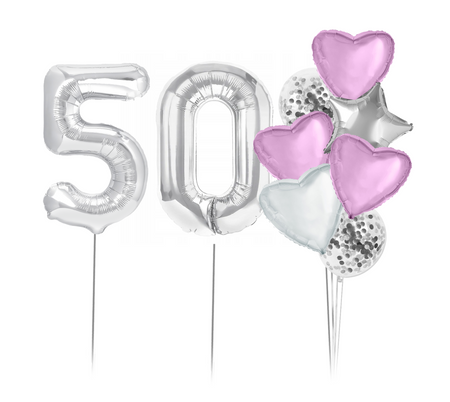 - Zestaw balonów z okazji urodzin z 2 cyframi do wyboru w odcieniach srebra i różu
