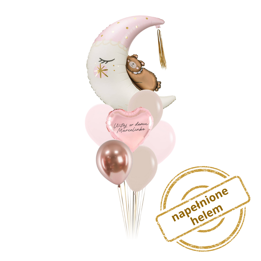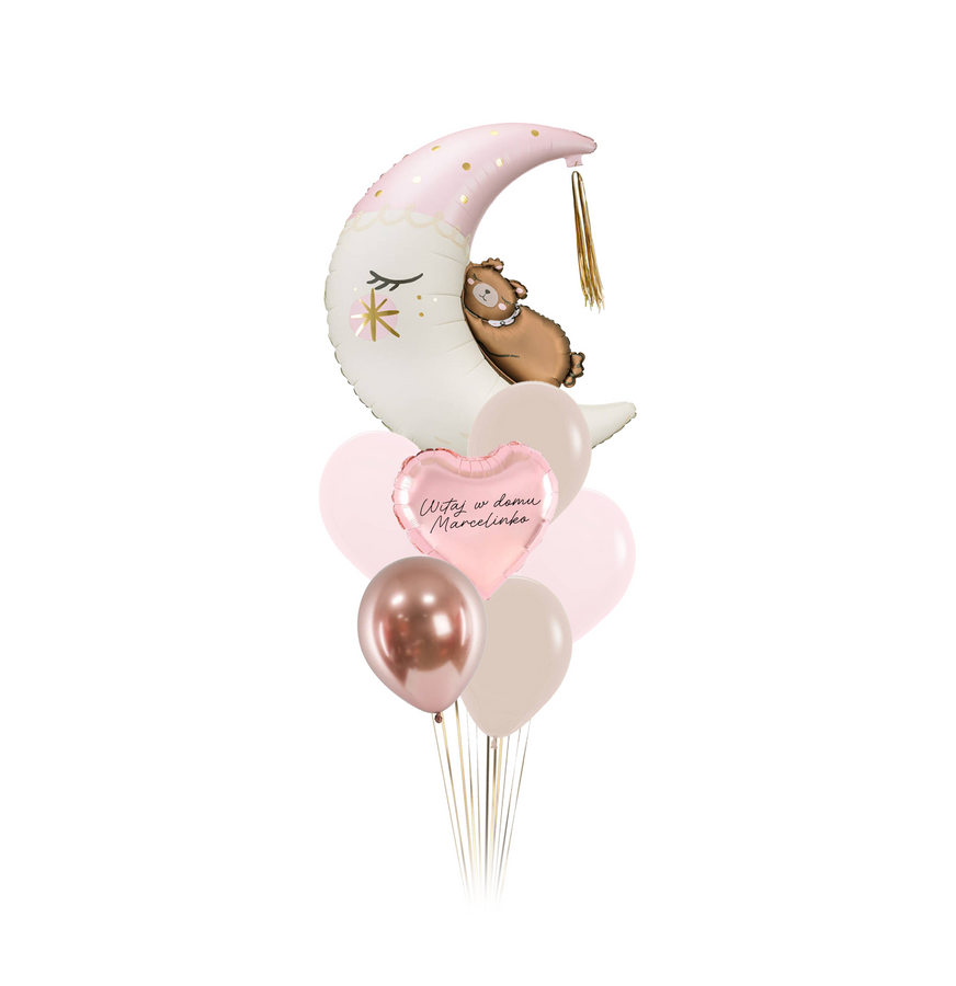 Zestaw balonów Bukiet balonowy Księżyc z Misiem różowy PERSONALIZACJA 7 szt. Z HELEM