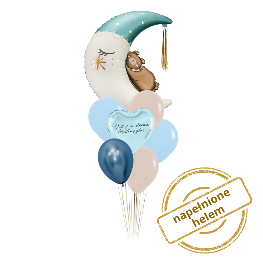 Zestaw balonów Bukiet balonowy Księżyc z Misiem niebieski PERSONALIZACJA 7 szt. Z HELEM