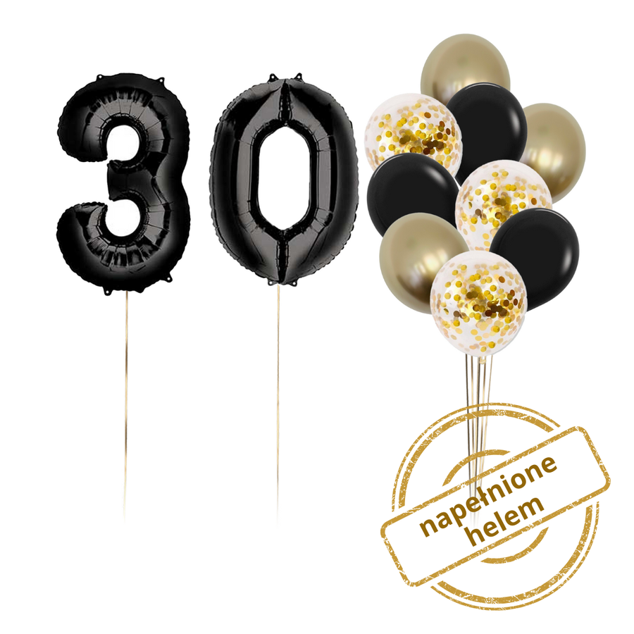 Zestaw balonów Bukiet balonowy urodzinowy czarno złoty z 2 cyframi do wyboru ( 11 szt.) Z HELEM