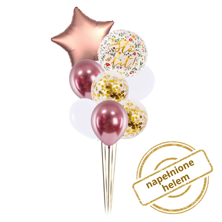 Zestaw balonów Bukiet balonowy urodzinowy z gwiazdką dla NIEJ ( 8 szt.) Z HELEM