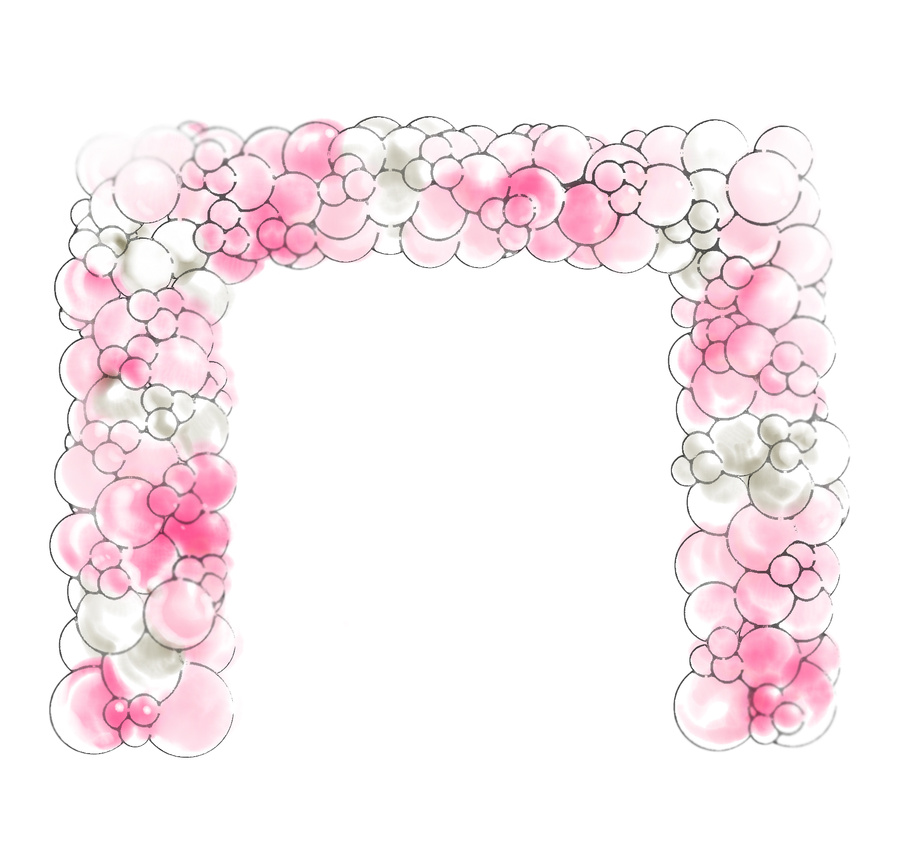 - Balonowa girlanda organiczna oparta na stelażu kwadratowym, tworząca efektowną bramę balonową.