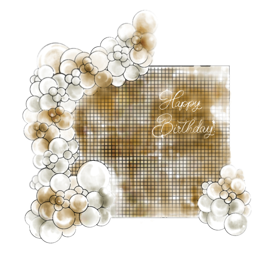 Ścianka balonowa na stelażu kwadratowym z panelami cekinowymi