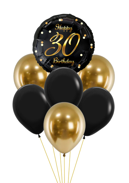 Zestaw balonów Bukiet balonowy na 30 urodziny czarno złoty ( 7 szt.)