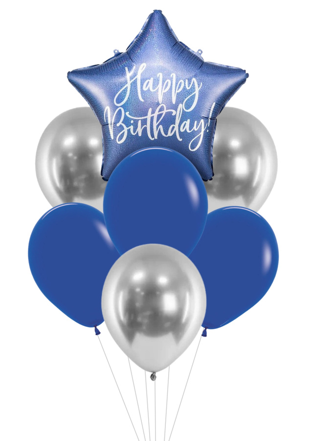 Zestaw balonów Bukiet balonowy na urodziny niebiesko srebrny (7 szt.)