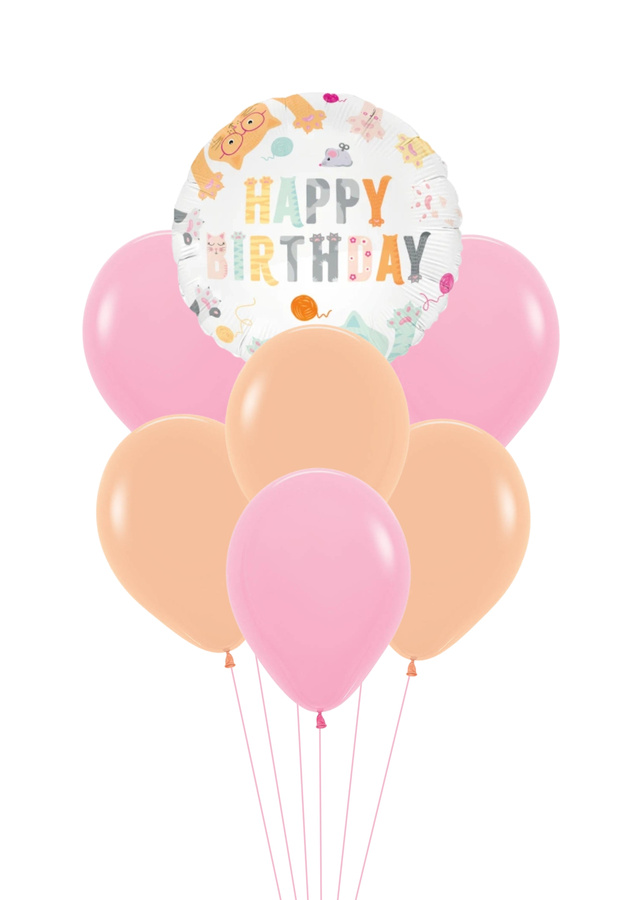 Zestaw balonów Bukiet balonowy urodzinowy z kotkami Happy Birthday (7 szt.)