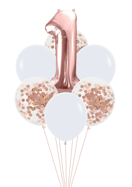 Zestaw balonów Bukiet balonowy złoto różowy urodzinowy z 1 cyfra do wyboru (7 szt.)