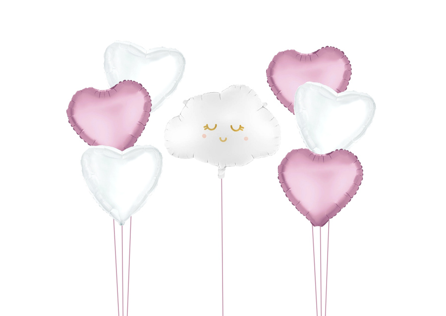Zestaw balonów Bukiet balonowy biało różowy z chmurka i serduszkami (7 szt.)