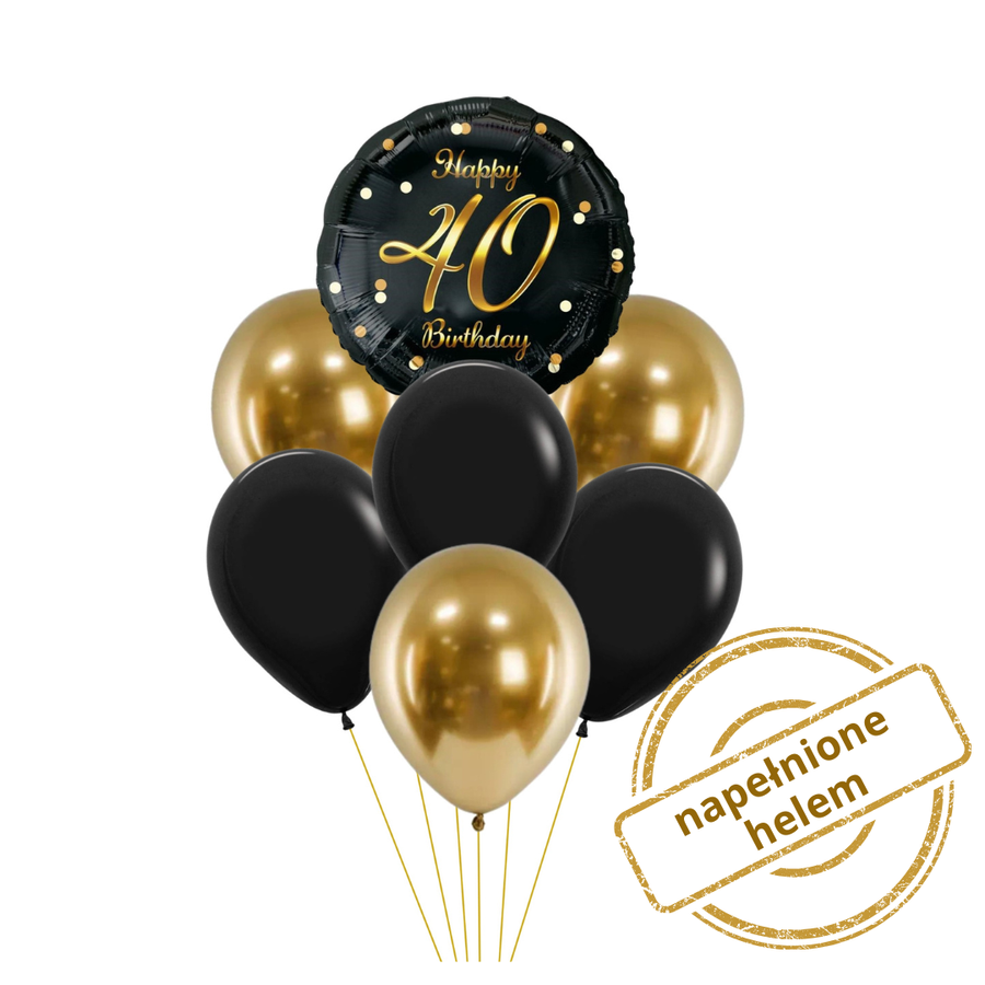 Zestaw balonów Bukiet balonowy na 40 urodziny czarno złoty (7 szt.) Z HELEM