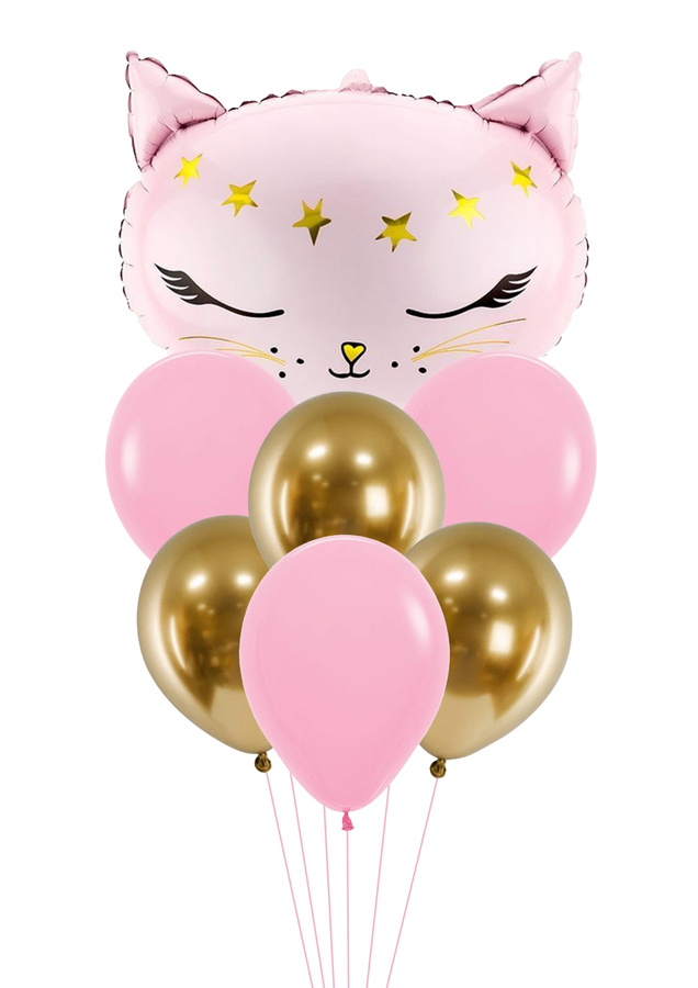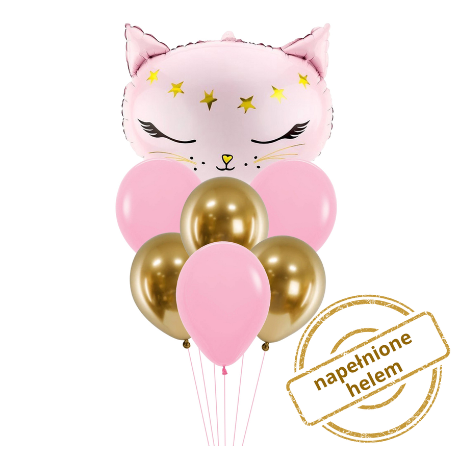 Zestaw balonów bukiet balonowy z kotkiem różowo złoty 7 szt. Z HELEM