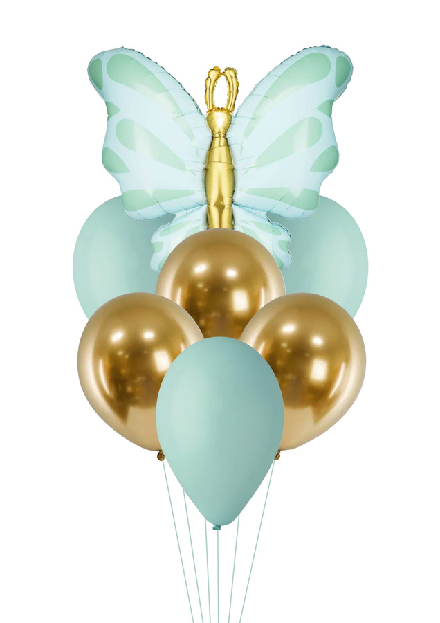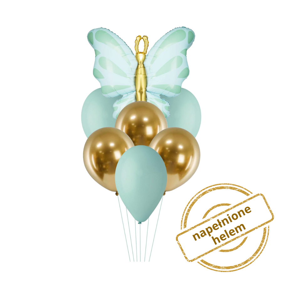 Zestaw balonów Bukiet balonowy z Motylem zielono złoty (7 szt.) Z HELEM