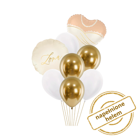 Zestaw balonów Bukiet balonowy biało złoty Pani Młoda (8 szt.) Z HELEM