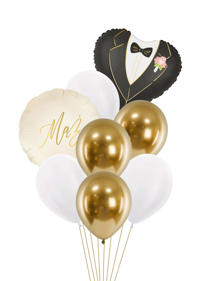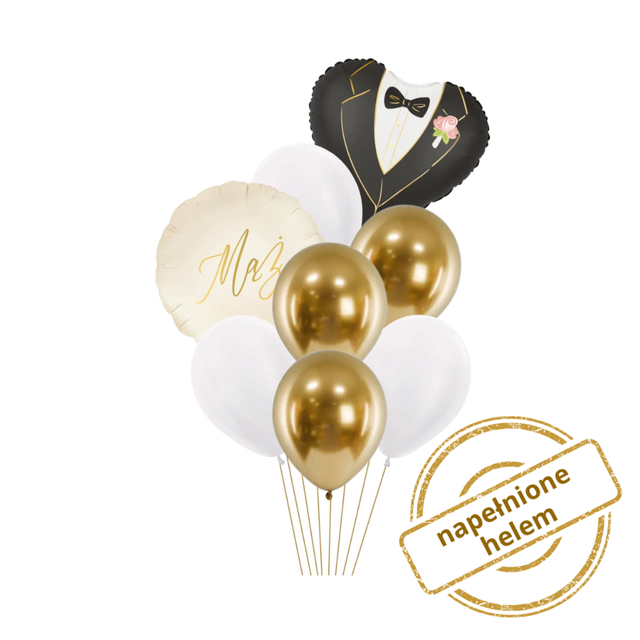 Zestaw balonów Bukiet balonowy biało złoty Pan Młody (8 szt.) Z HELEM