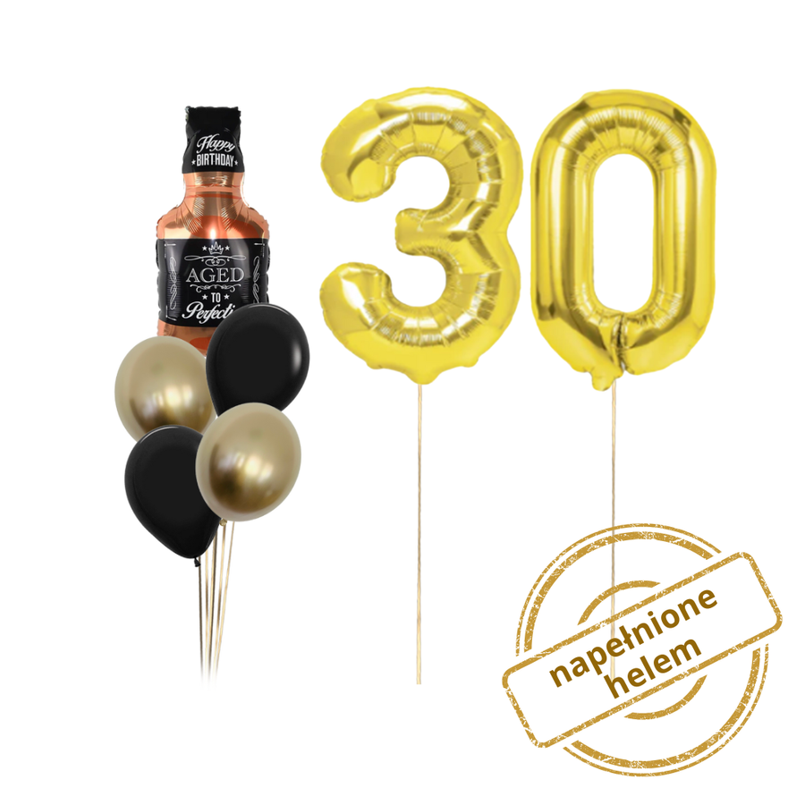 Zestaw balonów Bukiet balonowy urodzinowy złoty z whisky z 2 cyframi do wyboru ( 7 szt.) Z HELEM
