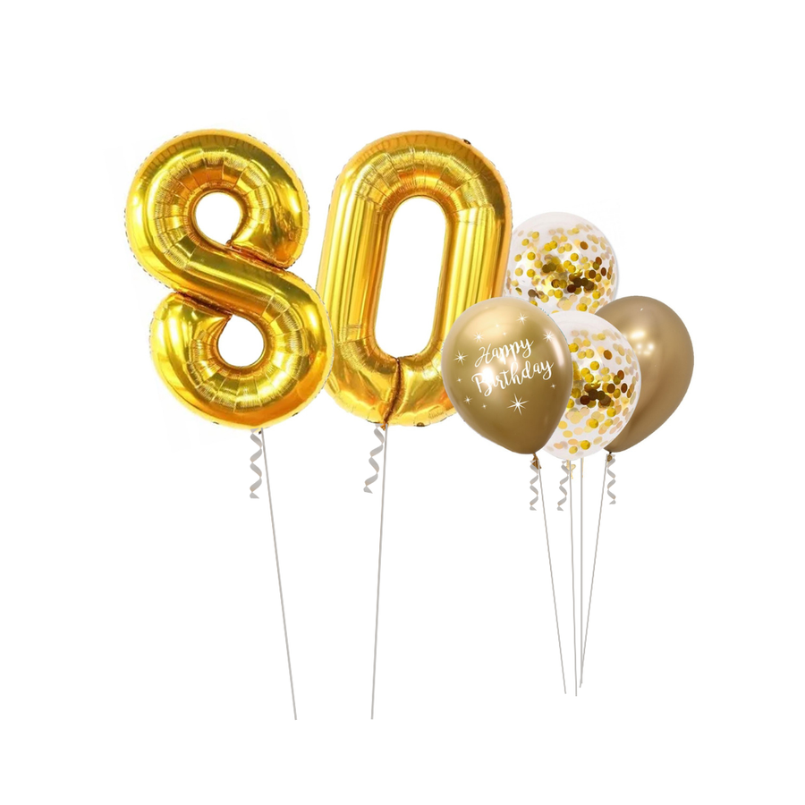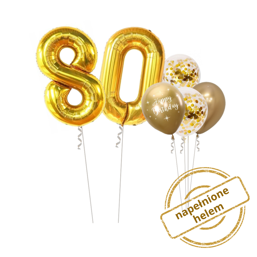 - Zestaw balonów z okazji urodzin z 2 cyframi do wyboru w odcieniach złota.