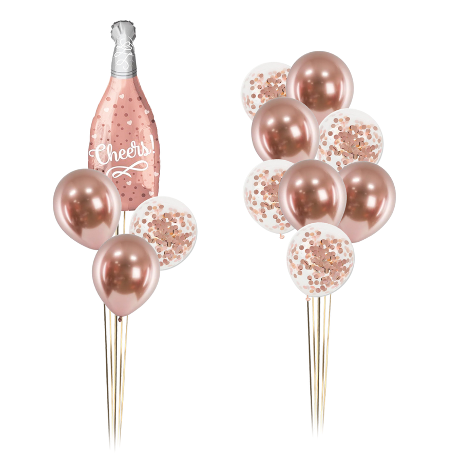 Zestaw balonów Bukiet balonowy z butelką szampana Cheers różowy (12 szt.)