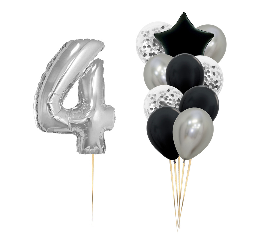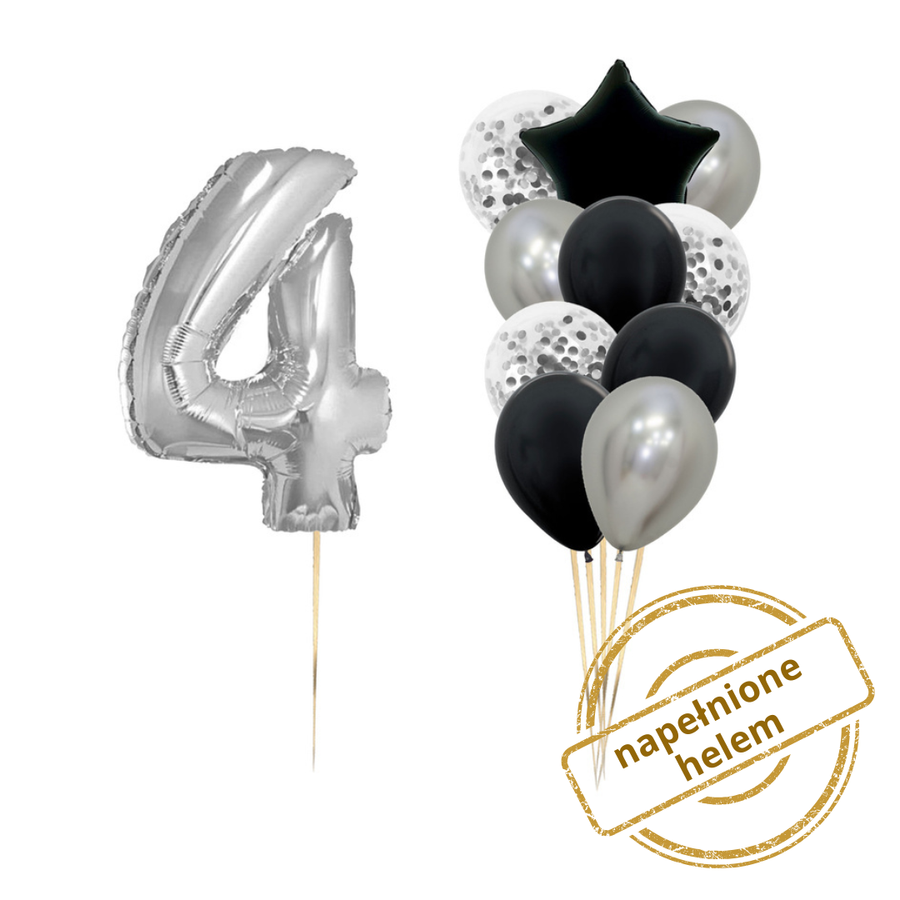 Zestaw balonów Bukiet balonowy czarno-srebrny z cyfrą (11 szt.) Z HELEM