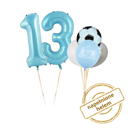 Zestaw balonów Bukiet balonowy dla fana piłki nożnej 2 cyfry do wyboru (6 szt.) Z HELEM