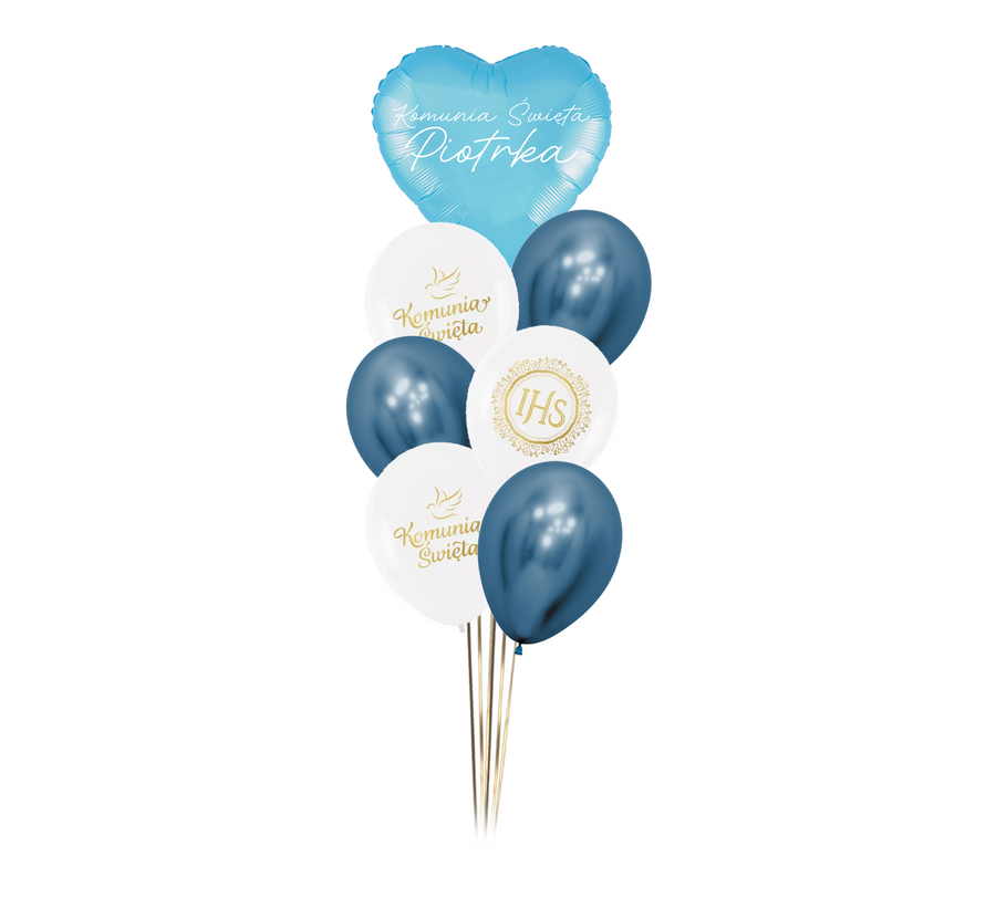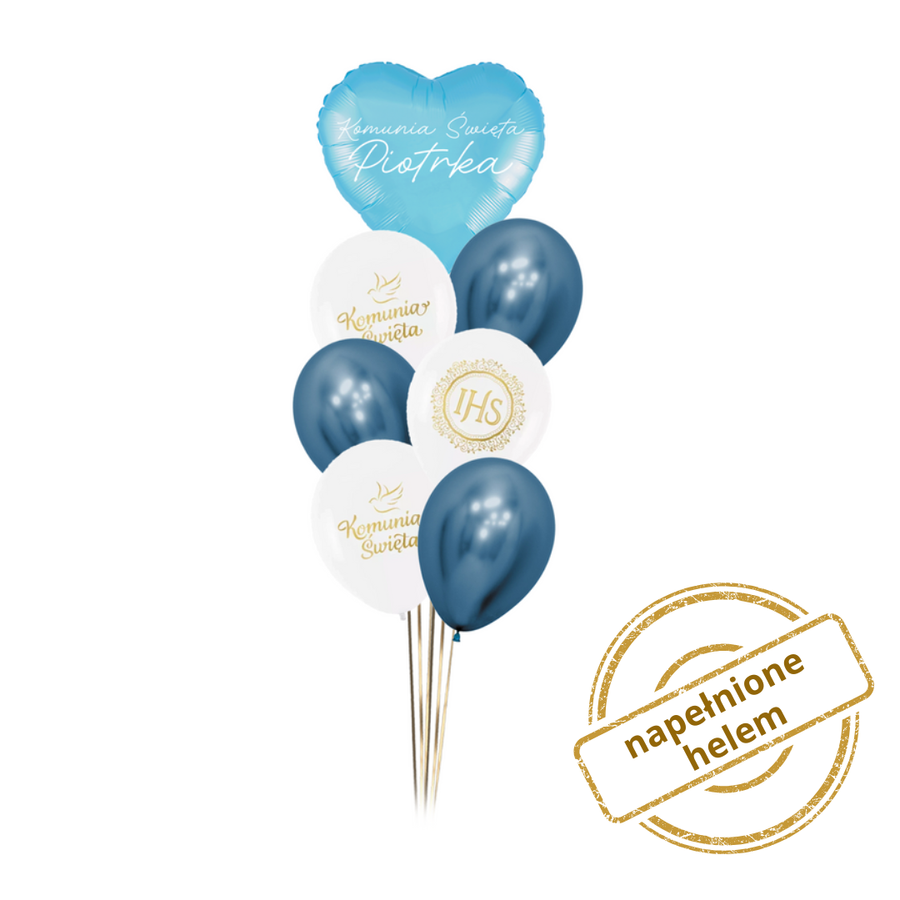 Zestaw balonów Bukiet balonowy Komunijny z personalizacją 7 szt.Z HELEM